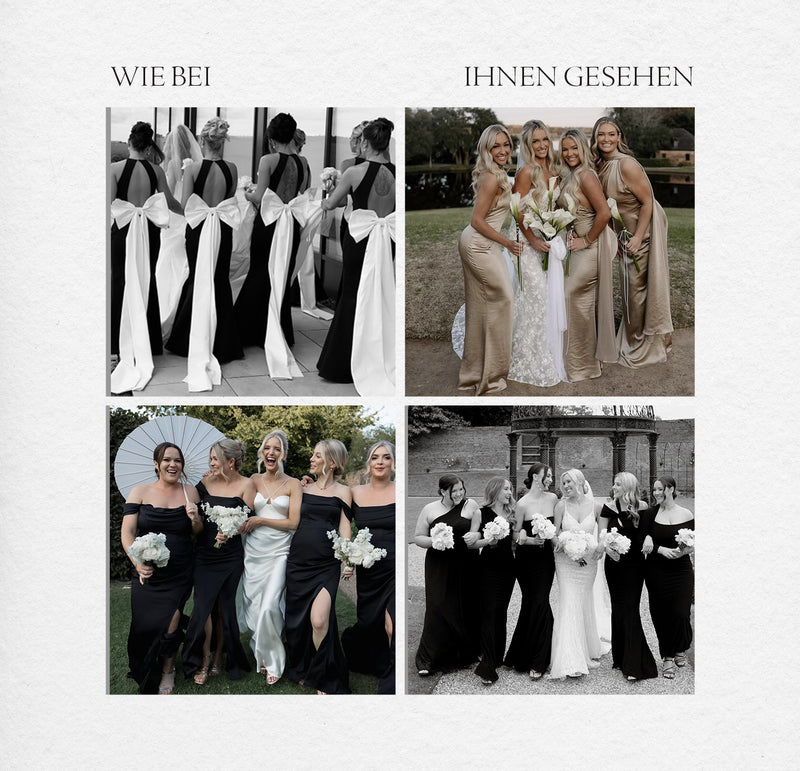Von abgestimmten Farbtönen bis hin zu Mix and Match Styles: Finden Sie die Stücke, die Ihre Brautgesellschaft lieben wird. Ob monochrome Kleider, die jeder Figur schmeicheln, oder drapierte Designs, die wunderschön fließen, unsere Kleider sind dafür entworfen, Ihren großen Tag mühelos perfekt abzurunden.