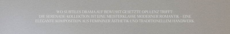 Die Serenade Collection feiert subtile Dramatik und luxuriöse Opulenz – moderne Romantik, elegant vereint mit Weiblichkeit und traditioneller Handwerkskunst.