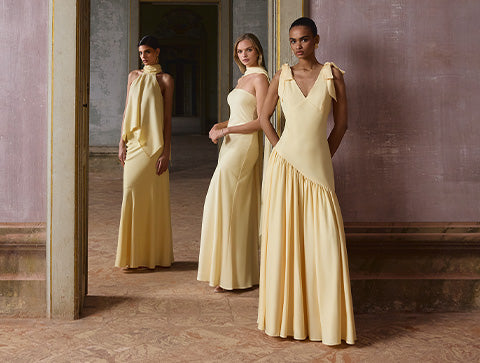 Mit eindrucksvollen Details zieht Mimi alle Blicke auf sich und überzeugt durch skulpturale Eleganz. Gefertigt aus hochwertigem Jersey in klarem Marineblau, betont dieses Maxikleid die Figur mit müheloser Grazie. Der geschlitzte Ausschnitt verleiht eine moderne, kühne Note, die durch strukturierte Schulterpolster unterstrichen wird. Dramatische, plissierte Cape-Ärmel fallen von den Schultern herab und schenken dem Design Bewegung sowie Statement-Charakter. Kombiniert mit eleganten Heels und auffälligen Ohrringen entsteht ein rundum schicker Look.